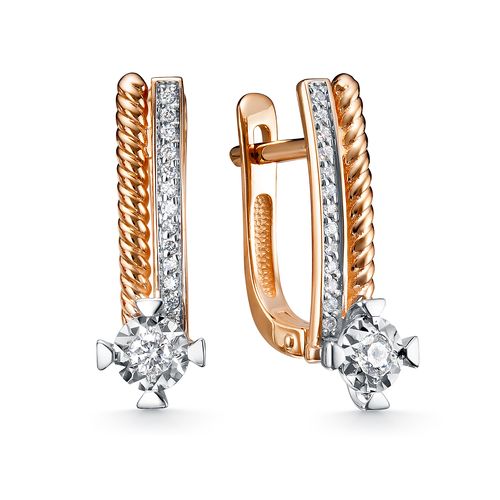 Серьги из золота с бриллиантом, рубином